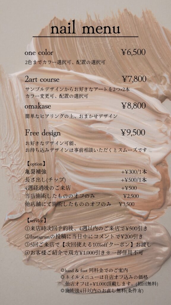 ネイル(ハンド・フット同料金)|ご新規様10%OFF